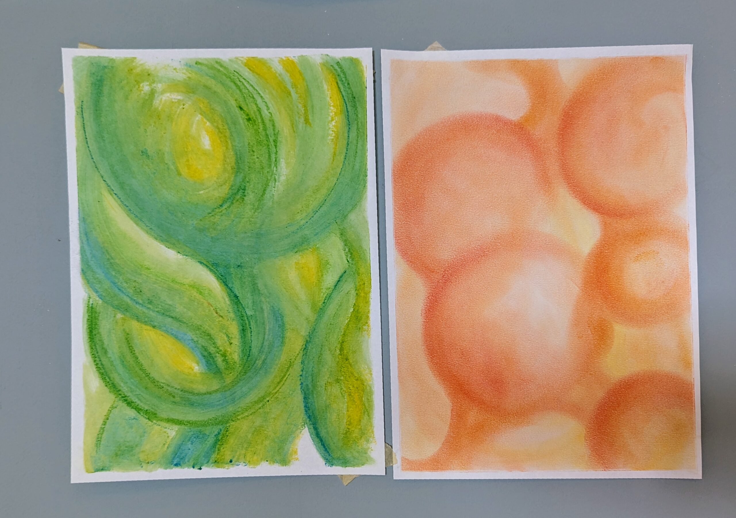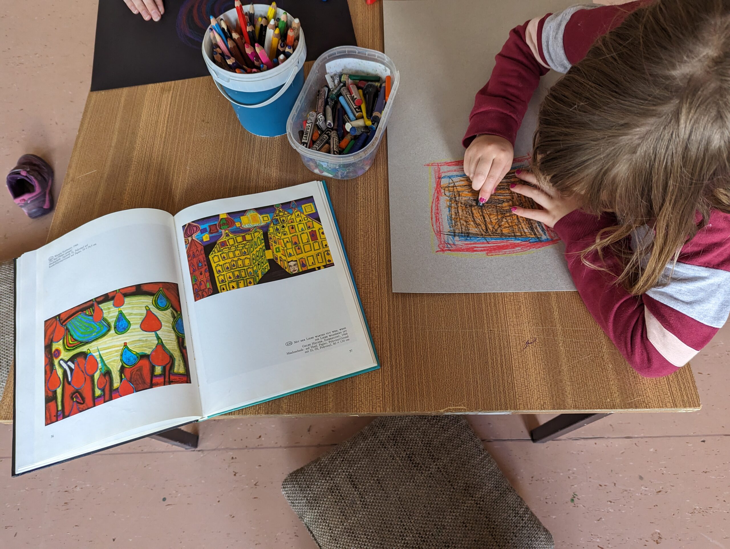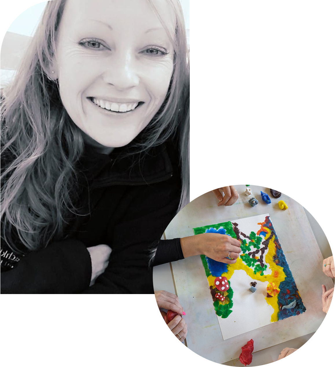 Als ich am Ende der Schulzeit von einem Berufsfeld namens „Kunsttherapie“ gelesen hatte, wusste ich, genau das will ich machen. Nachdem ich zunächst als Krankenschwester ausgebildet wurde und viele Jahre in diesem Beruf gearbeitet habe, bin ich 2017 auf die Möglichkeit gestoßen, eine zweijährige, berufsbegleitende Ausbildung zur Kunsttherapeutin zu absolvieren. Mein berufliches Umfeld ermöglichte es mir dann seit 2019, einmal in der Woche in einer Seniorenpflege mit älteren Menschen künstlerisch zu arbeiten. Doch schnell merkte ich, dass noch Puzzleteile fehlen… Wie kann ich Bilder noch betrachten, was brauchen Menschen beim Kunstmachen und wie kann ich unterstützend anwesend sein.